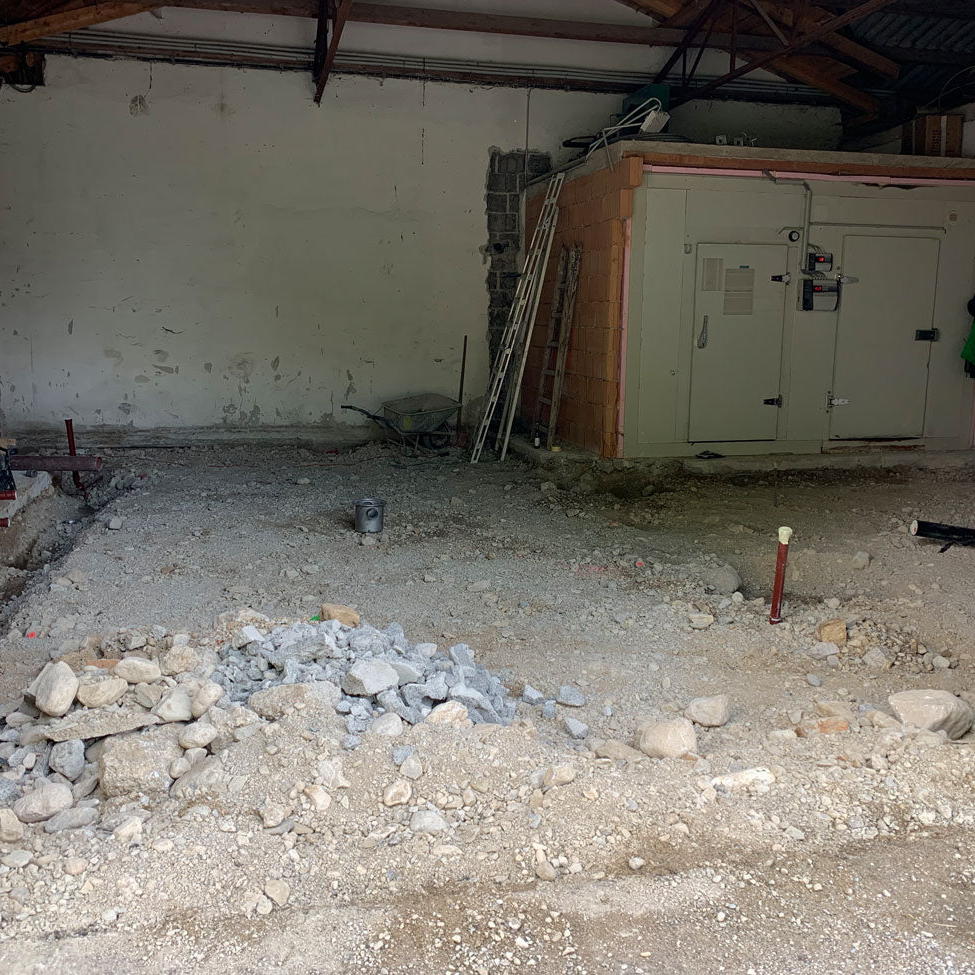 Unser Herzstück, die 130 m² große Manufaktur, hat ihren Platz bewusst in einer bestehenden Halle auf dem Hof gefunden. So bewahren wir die Landschaft und versiegeln keine neuen Flächen.